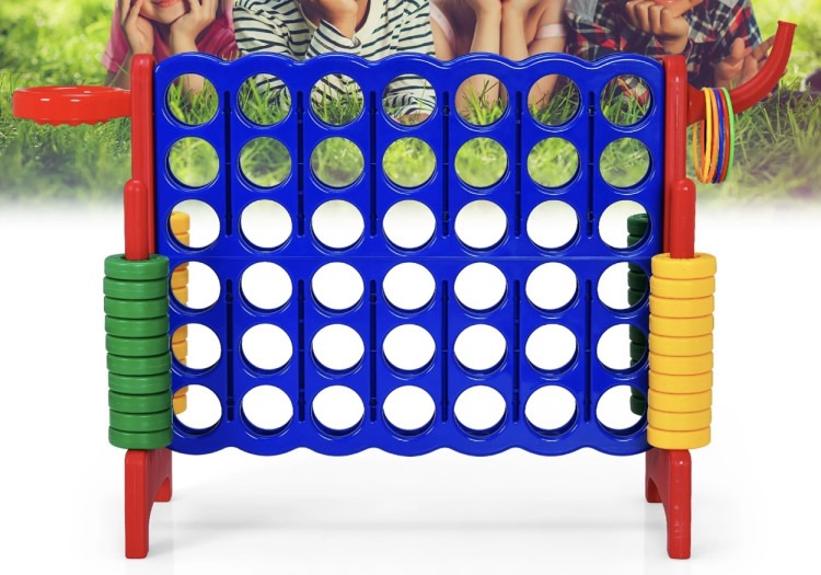 Bring big-time backyard competition to your next event with this Giant Connect 4 rental — an oversized, eye-catching version of the classic two-player strategy game that’s perfect for kids, teens, and adults. Set up on grass, pavement, or indoors, the freestanding frame holds large, easy-to-grasp discs and stretches several feet tall so the game is visible across a party or festival. Players take turns sliding colorful discs into the vertical grid, aiming to line up four in a row horizontally, vertically, or diagonally; the larger pieces and elevated playing field make it simple for spectators to follow the action and for players of any age to feel involved.